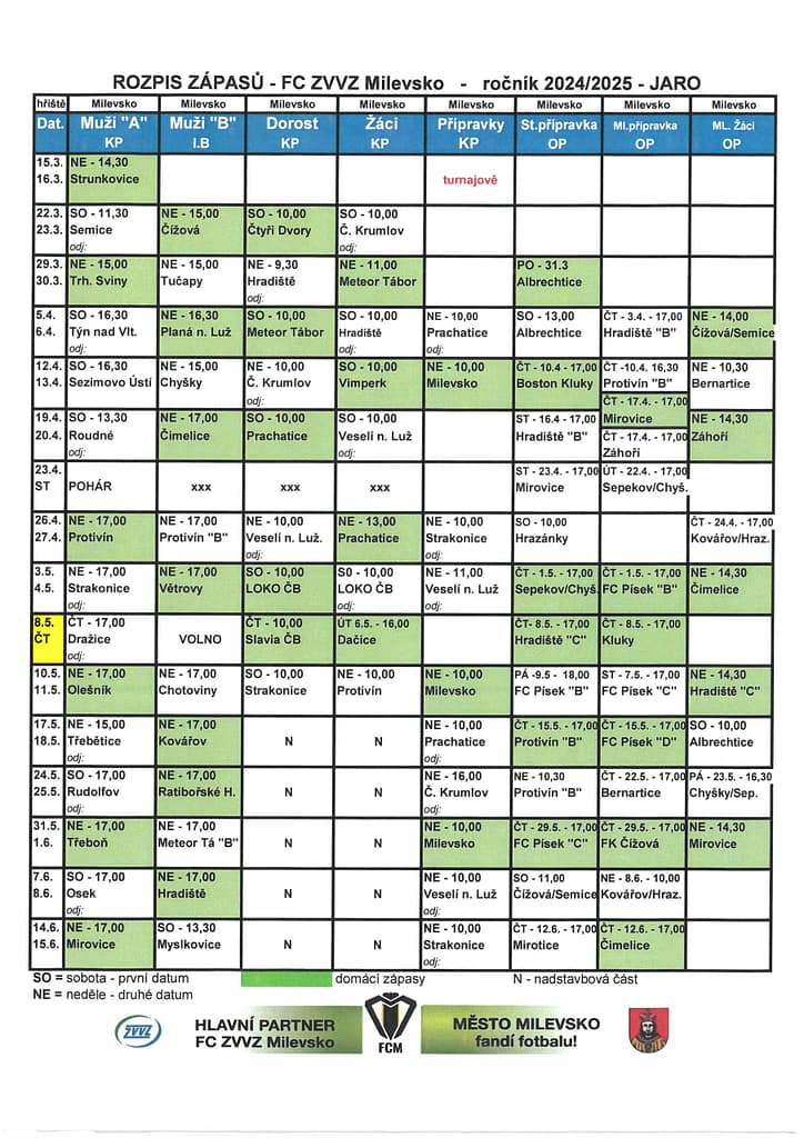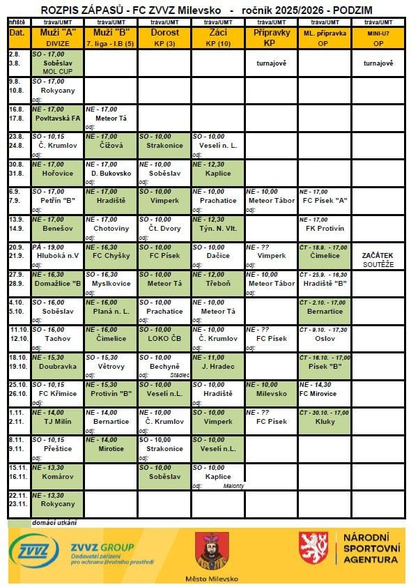 Rozpis FC ZVVZ Milevsko podzim 2025