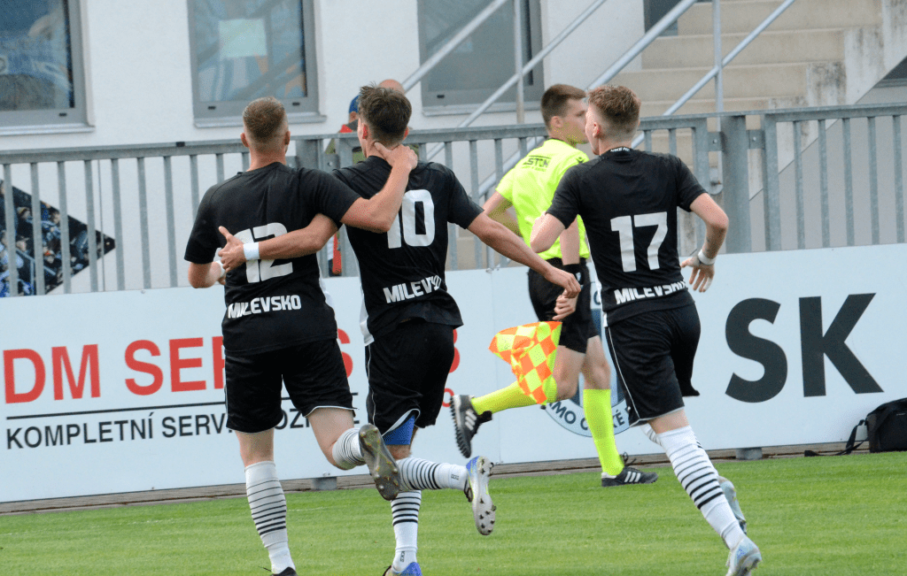 Milevsko: V. Neužil – Pich, Volf, Kotrba, Přibyl – Souček, Bártík (57. Sedlák) – Bílý (57. F. Hadáček), J. Hadáček (64. Petřík), Kortan (72. Kahoun) – Šťástka (75. Samec).