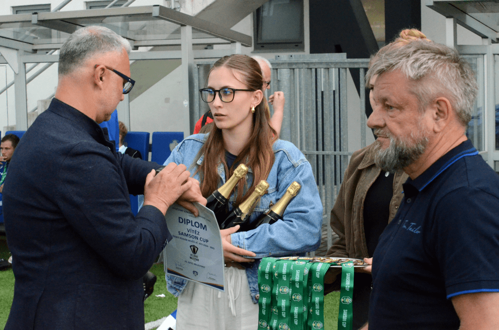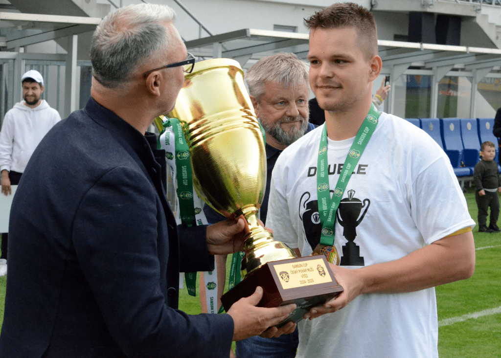 Po třech dnech tak předseda Jihočeského krajského fotbalového svazu Tomáš Pintér opět dekoroval fotbalisty Milevska. V neděli předával kapitánu Matěji Volfovi mistrovský pohár za krajský přebor po výhře 2:0 na hřišti Třebětic a dnes za Samson Cup. Právě Pintér stojí za finálovými zápasy poháru na Střeleckém ostrově, v předcházejících letech vyhráli krajský pohár fotbalisté Jankova (2022), Hluboké nad Vltavou (2023), Třeboně (2024) a letos tedy Milevšťáci. Vítěz krajského kola má právo postupu do celostátního MOL Cupu, ale tam už se vzduchotechnici stejně mohli v nové sezoně přihlásit jako účastníci divize.