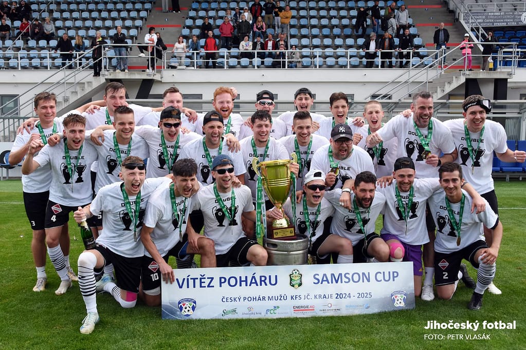 ČESKÉ BUDĚJOVICE – Double je doma! Fotbalisté Milevska ve finále krajského poháru Samson Cupu na budějovickém Střeleckém ostrově přejeli Sezimovo Ústí 5:0 a slaví druhý titul v rozmezí tří dní. Po definitivní jistotě prvenství v krajském přeboru a završení postupu do divize svěřenci trenéra Tomáše Smrčiny vládnou také pohárové soutěži, do které se mohli zapojit účastníci všech krajských soutěží od I. B třídy po krajský přebor a vítězové okresních pohárů. Na mistrovský double od zavedení finálových zápasů na Střeleckém ostrově ještě nikdo nedosáhl.