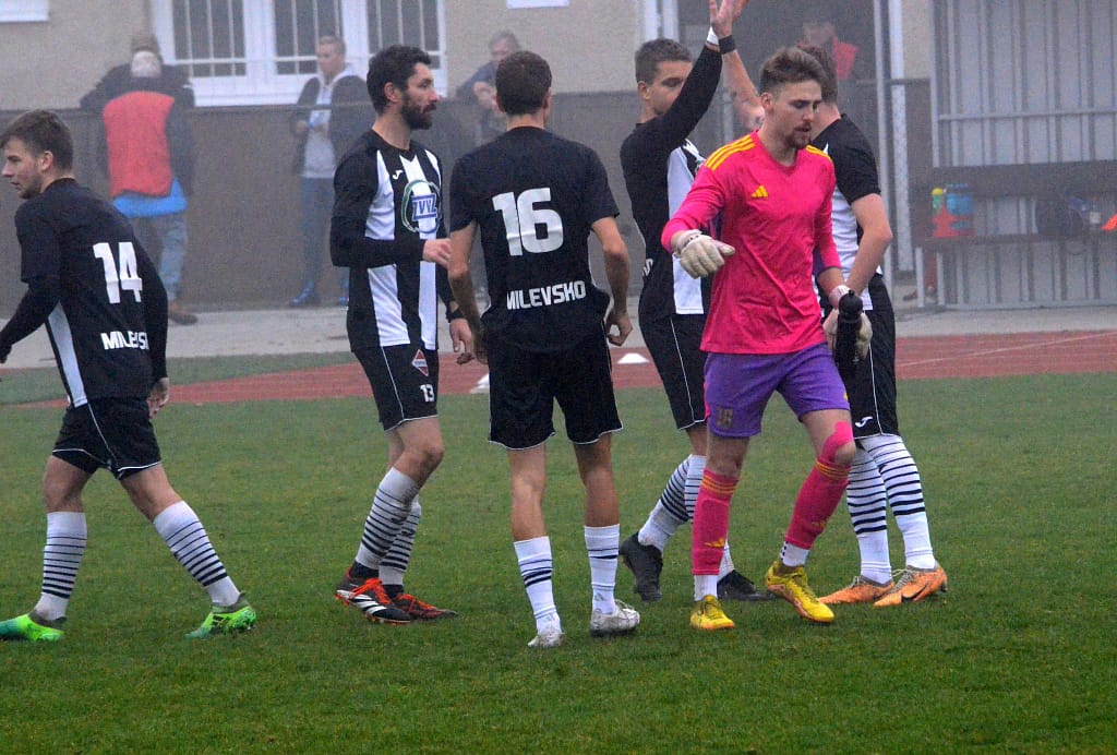 MILEVSKO – Titul vítězů první poloviny sezony už jim nikdo nevezme! Osmý korálek na vítěznou šňůru přidali fotbalisté Milevska v neděli 10. listopadu doma proti Oseku. Vedoucí tým krajského přeboru potvrdil vynikající formu ve své domácí rozlučce s letošním kalendářním rokem, a protože Semice v sobotu senzačně obraly druhé Roudné, má Milevsko kolo před koncem podzimní části nedostižný šestibodový náskok. Svěřenci trenéra Tomáše Smrčiny se proti Oseku rychle ujali vedení, ale hosté v první půli s favoritem drželi krok a v jejím závěru Šourkem srovnali – 1:1. Po změně stran ale zápas patřil Milevsku, nejprve z brejku udeřil Filip Hadáček, jehož gól se nakonec ukázal být vítězným, a poté šli navíc fotbalisté Oseka do deseti. Od té doby už měl první tým přeboru zápas ve svých rukou a přidal ještě dvě branky – 4:1. Důležitou postavou zápasu byl Tom Bílý, který nejprve připravil první dvě trefy pro své spoluhráče a třetí pak sám dal. Dvě branky zase vstřelil jeho ofenzivní parťák Jaroslav Hadáček, jeden z nejlepších kanonýrů celé soutěže.