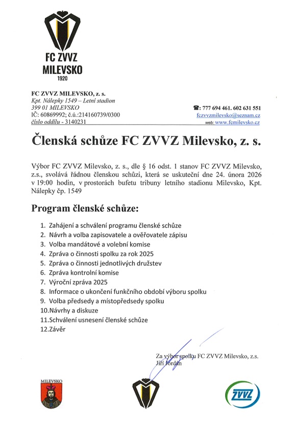 Členská schůze FC ZVVZ Milevsko, z. s.