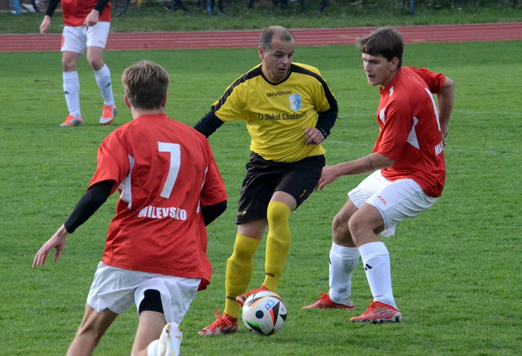 MILEVSKO – Rozdíl v produktivitě byl jazýčkem na vahách dnešního utkání osmého kola nejnižší krajské soutěže I. B třídy mezi Milevskem B a Chotovinami. Hosté, opírající se už několik sezon hlavně o zkušeného a šikovného špílmachra Volodymyra Bondareva, byli v první půli aktivnější a hrálo se hlavně na jejich útočné polovině. Domácí vzduchotechnici ale přežili několik šancí, když výrazně pomohl i gólman Michal Hejl, aby v závěru první půle dvěma slepenými góly poslal domácí do až nezaslouženého vedení 2:0 Šimon Kutil. Poslední třetí hřebíček pak opařeným Chotovinám zatloukl po přestávce Pavel Dvořák.