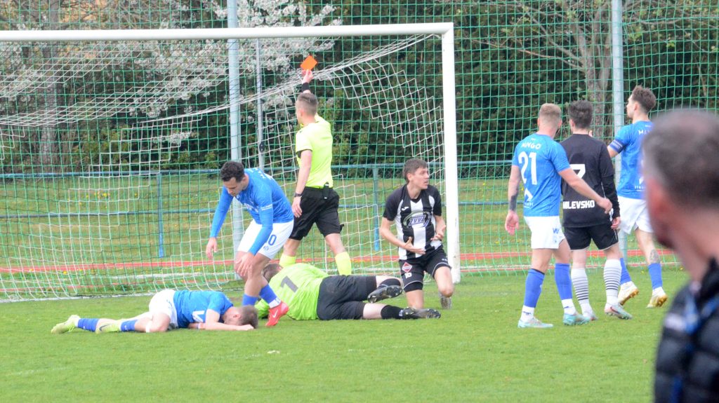 MILEVSKO – Závěr prvního poločasu zlomil bodové naděje. Fotbalisté Milevska po těsné prohře 0:1 na hřišti suverénního Benešova přivítali v krajském derby 22. kola divize Hlubokou nad Vltavou. Oba týmy ve vyrovnaném středu tabulky dělily jen tři body a domácí nováček tak mohl soupeře z podzámčí bodově dotáhnout, ale opak byl pravdou. Hosté byli v zápase kombinačně kvalitnějším týmem, ale rozhodující byla pro celý zápas situace ze závěru prvního poločasu. Za stavu 1:1 došlo ke tvrdému střetu mezi hlubockým Hrachovcem a milevským brankářem Hejlem a jeho spoluhráčem Přibylem. Akce pak pokračovala, hosté zakončovali do odkryté brány a míč smolně rukou zasáhl na čáře kapitán Volf. Milevský stoper dostal červenou kartu, Pecka z penalty poslal Hlubokou do vedení a druhému poločasu už jeho tým v početní výhodě dominoval – 3:6.