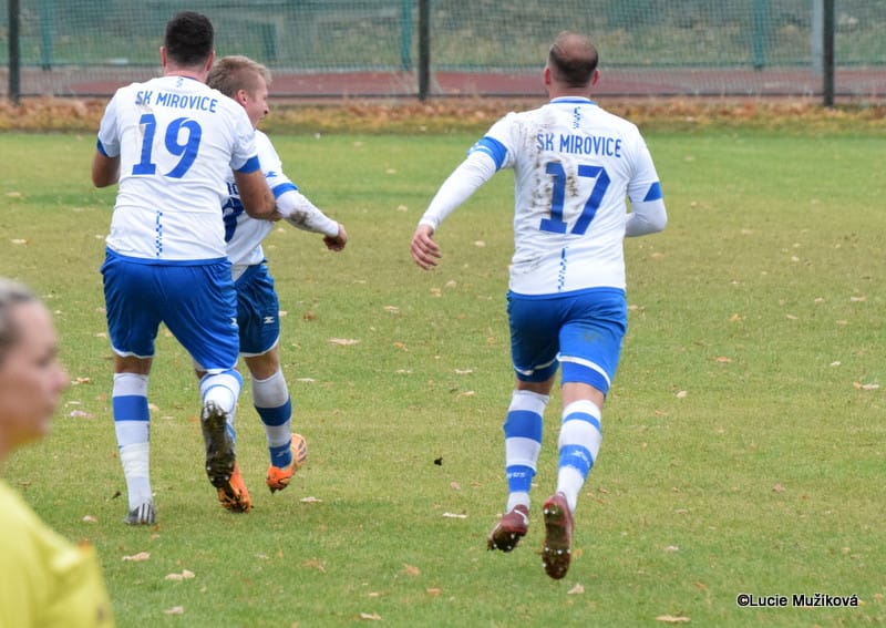 MIROVICE – Podzimní část sezony je u konce a poslední utkání mají za sebou také fotbalisté Mirovic, kteří v sobotu 11. listopadu poměřili síly s Milevskem. Hostům s čtyřiadvaceti body patřila pátá příčka. Celek trenéra Michala Čadka byl se ztrátou šesti bodů osmý. V úvodu měli navrch hosté a než se Mirovice stačily rozkoukat, prohrávaly 0:2. Rychlé vedení Milevsko ukolébalo a hráči si nejspíš mysleli, že to půjde samo. To byli ale na omylu a domácím se po gólech Matěje Štochla a Jakuba Převrátila podařilo srovnat. Druhá půle začala velkou šancí svěřenců trenéra Tomáše Smrčiny, kteří sice měli převahu, ale bez gólového výsledku. To Mirovice byly efektivnější. Nejdříve šly do vedení díky Michalu Hulešovi a o chvíli později skvělou samostatnou akci Matěje Štochla zakončil Tomáš Vondrák. Závěr zápasu už si domácí zkušeně pohlídali a zapsali šestou výhru sezony.