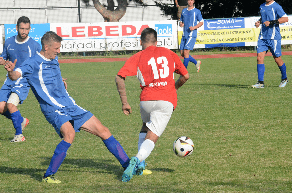 MILEVSKO – Domácí Milevsko B bylo po dvou kolech stoprocentní, Chyšky na nule. Nedělní derby nejnižší krajské soutěže mělo jasného favorita, který také od úvodu svého soupeře přehrával. Už po čtvrthodině a brankách Baštýře s Kahounem vedla domácí juniorka 2:0 a zdálo se, že zápas bude jen o rozdílu skóre. Chyšečtí se ale nevzdali, přežili další šance a jiskru naděje před pauzou vykřesal Lívanec. Ve druhé půli pak hosté zlepšili i svůj výkon a hnali se za vyrovnáním. Nastřelili břevno a jak sympaticky přiznal i domácí trenér Reiniš, ještě Chyškám pravděpodobně rozhodčí Hanzlíková upřela penaltu. Nakonec se ale hosté vyrovnání přece jen dočkali, když v 92. minutě srovnal paradoxně milevský odchovanec Martínek – 2:2.