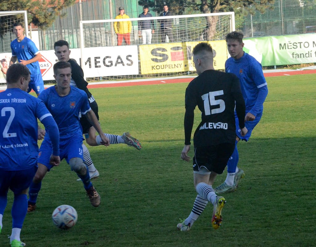 MILEVSKO – Šlágr vítěze nenašel. Fotbalisté Milevska jsou v posledních týdnech na vlně a po rozpačitém startu do sezony dělají radost bodovými zisky i kvalitním fotbalem. Vzrůstající tendenci chtěli potvrdit i proti velmi dobře hrající Třeboni, která šla do zápasu jako druhý tým tabulky. Šlágr dvanáctého kola nabídl takticky svázané utkání, ve kterém na sebe narazily dva velmi dobře organizované celky a čekalo se na chybu. Blíže k vítězství měli fotbalově kvalitnější hosté, kteří byli více na míči a vytvořili si i výraznější šance. Neproměnili ale žádnou včetně pokutového kopu, který vystihl a zneškodnil v první půli Michal Hejl. I Milevsko nakonec mohlo při troše štěstí zvítězit – Filip Hadáček nejprve neproměnil únik na začátku druhého poločasu a pak byl velmi blízko rozhodnutí ještě z posledního přímého kopu v utkání. Jeho krásnou střelu ale takřka z šibenice vytáhl třeboňský brankář Josef Flaška – 0:0.