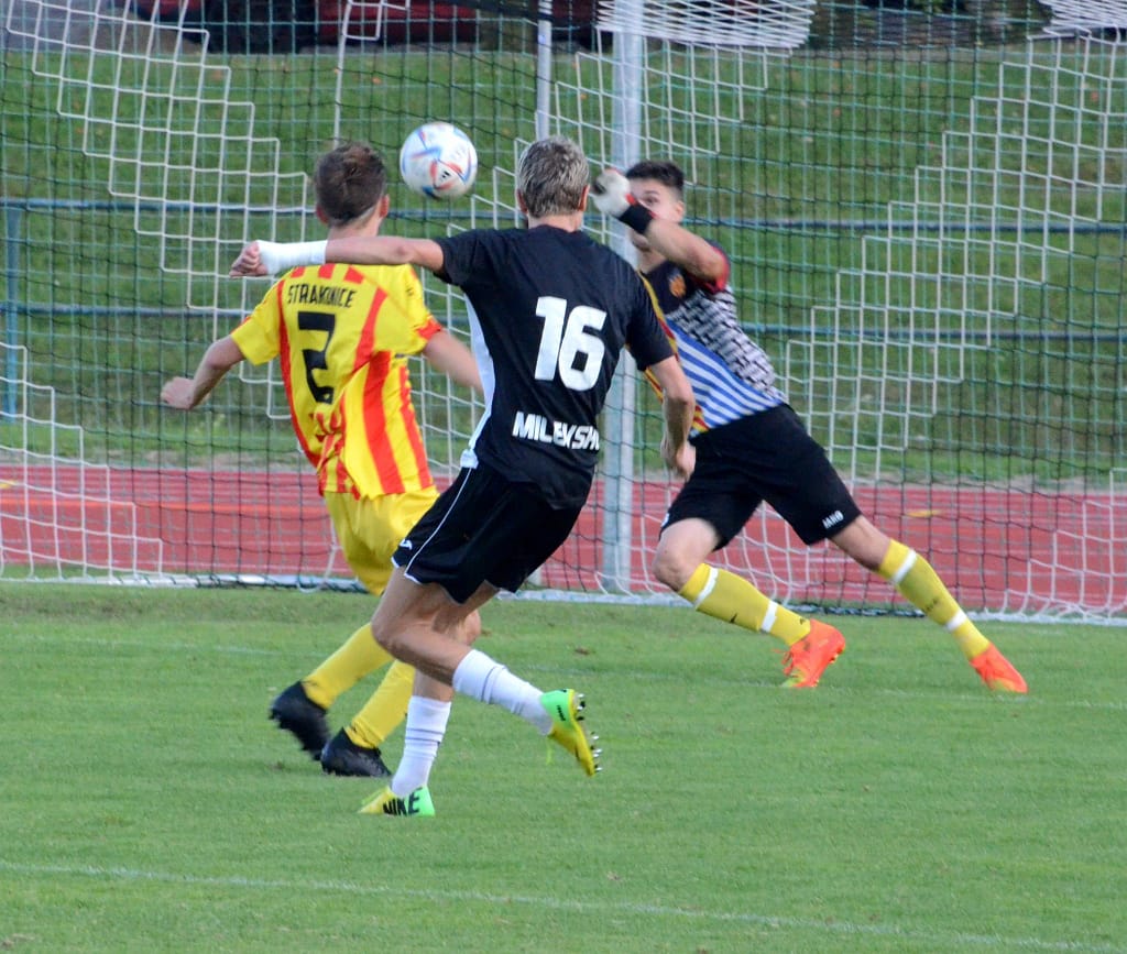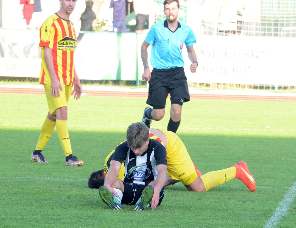 MILEVSKO – Konečně se dočkali! Až na čtvrtý pokus v této sezoně prolomili fotbalisté Milevska prokletí domácích zápasů, když ve čtvrtečním vloženém prvním kole krajského přeboru porazili trápící se Strakonice. Ani souboj s týmem, který v sezoně zapsal dosud jediné vítězství, pro ně ale nebyl jednoduchou procházkou. Po první půli totiž Strakoňáci vedli 2:1, což zařídil krásnou střelou z dálky do šatny Kubeš. Ve druhé půli se ale hrálo de facto jen na jednu bránu a hosté vyjma dvou standardních situací branku Milevska neohrozili. Výsledkový obrat nastartoval svým průnikem Kortan, který byl faulován a Volf z penalty vyrovnal – 2:2. Hostům postupně začaly docházet síly, povzbuzení vzduchotechnici navíc ještě šlápli do pedálů a dvěma góly v rozmezí čtyř minut definitivně zlomili zápas na svou stranu. Nejprve střílel přesně k tyči Filip Hadáček a první domácí výhru Milevska pečetil ze vzduchu střídající Kálal – 4:2.