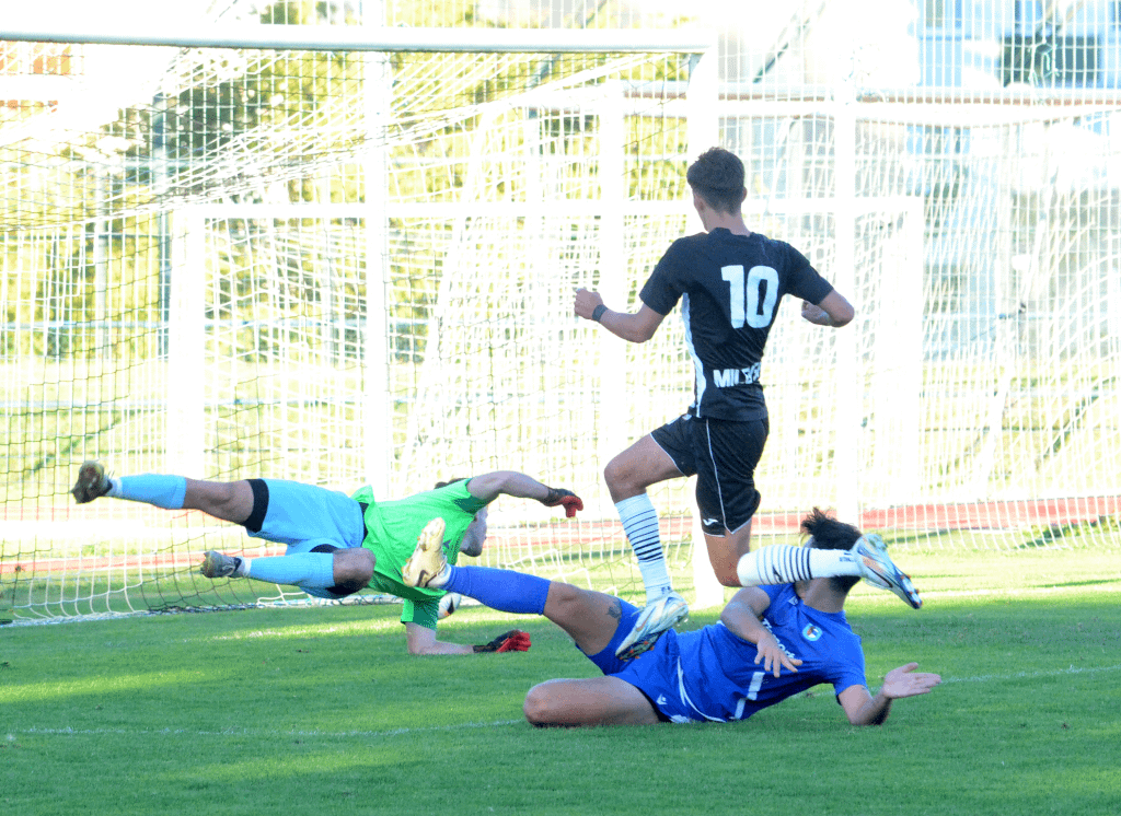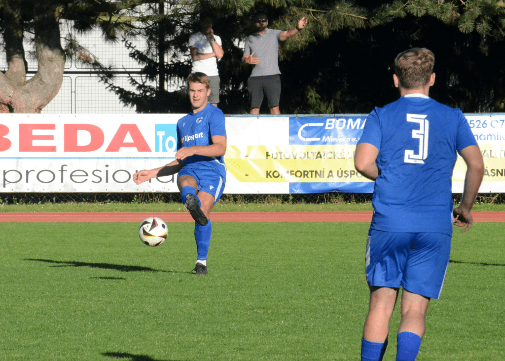 MILEVSKO – Vítězství z Krumlova je potvrzeno! Fotbalisté Milevska v nedělním utkání čtvrtého kola divize proti Hořovicím zadělali na první domácí vítězství sezony už v první půli, kdy si vytvořili dvoubrankový náskok. Přestože hosté do přestávky snížili na 1:2 a poté ještě v samém závěru zápasu na konečných 2:3, nováček čtvrté nejvyšší soutěže zapsal zaslouženě další tři body. Pod vítězství se stejně jako v Krumlově podepsal dvěma góly Tom Bílý, hlavní útočná síla vzduchotechniků v novém ročníku.