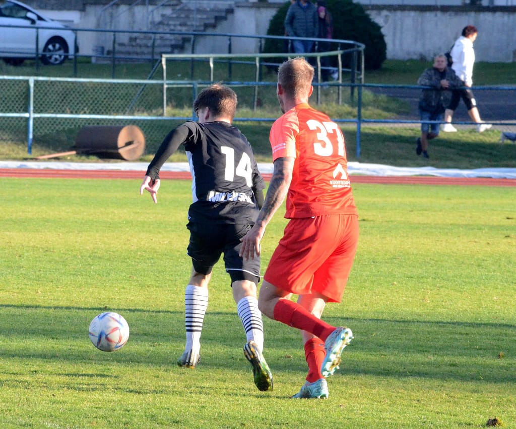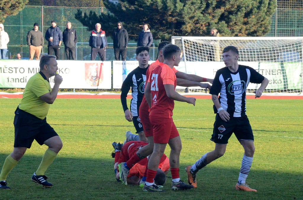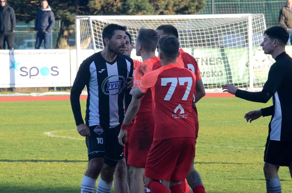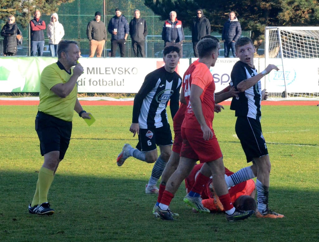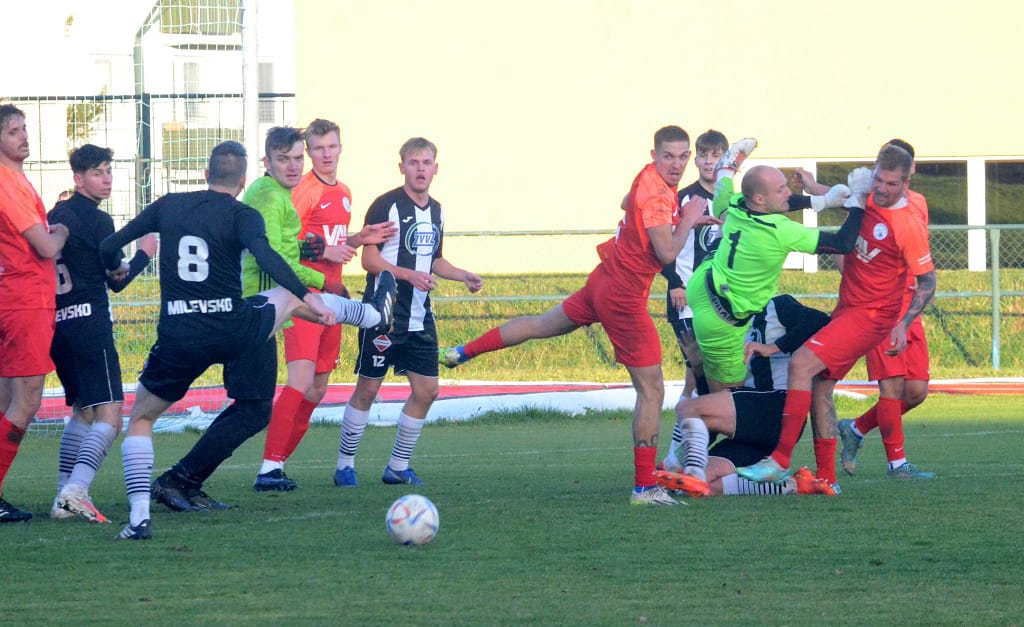 MILEVSKO – Bez gólů se vyhrát nedá. Tahákem 14. kola krajského přeboru bylo jednoznačně sobotního utkání devět zápasů neporaženého Milevska s lídrem soutěže Hlubokou nad Vltavou. Domácí v posledním utkání kalendářního roku před vlastními fanoušky hlavně v první půli svého soupeře přehrávali a aktivním napadáním nutili lídra spíše k nákopům. V posledních zápasech ale dokáží zahodit nemožné, a tak místo toho, aby po půli o jeden, dva góly vedli, tak došlo právě po jednom z nákopů k faulu ve vápně a Hluboká poločas vyhrála Peckovým gólem z penalty – 0:1. Po změně stran už se tolik fotbalu nehrálo. Naopak přibývalo negativních emocí na trávníku i mezi oběma střídačkami, až za nesmyslný skluz milevský Kotrba vyfasoval po zásluze červenou kartu. I v oslabení se ještě Milevsko snažilo o vyrovnání a Hlubočtí prakticky jen odkopávali míč do bezpečí, ale gól neinkasovali a odvezli si tak všechny tři body.