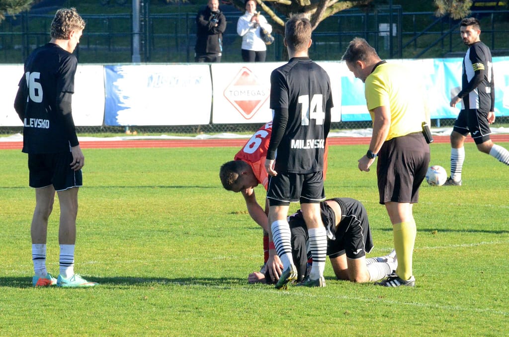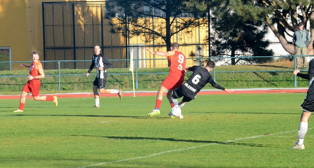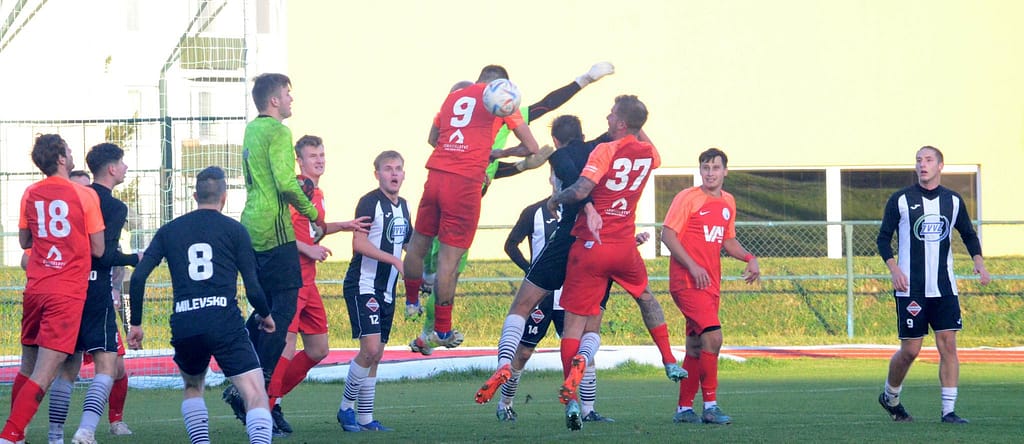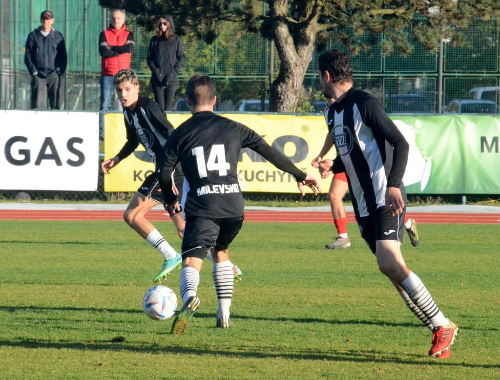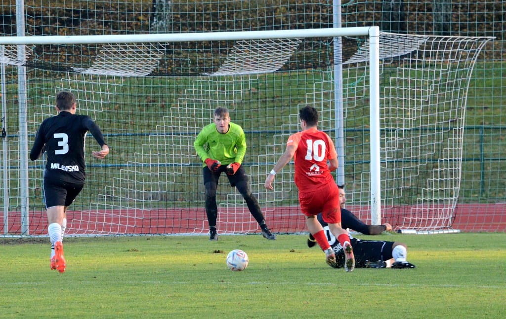 MILEVSKO – Bez gólů se vyhrát nedá. Tahákem 14. kola krajského přeboru bylo jednoznačně sobotního utkání devět zápasů neporaženého Milevska s lídrem soutěže Hlubokou nad Vltavou. Domácí v posledním utkání kalendářního roku před vlastními fanoušky hlavně v první půli svého soupeře přehrávali a aktivním napadáním nutili lídra spíše k nákopům. V posledních zápasech ale dokáží zahodit nemožné, a tak místo toho, aby po půli o jeden, dva góly vedli, tak došlo právě po jednom z nákopů k faulu ve vápně a Hluboká poločas vyhrála Peckovým gólem z penalty – 0:1. Po změně stran už se tolik fotbalu nehrálo. Naopak přibývalo negativních emocí na trávníku i mezi oběma střídačkami, až za nesmyslný skluz milevský Kotrba vyfasoval po zásluze červenou kartu. I v oslabení se ještě Milevsko snažilo o vyrovnání a Hlubočtí prakticky jen odkopávali míč do bezpečí, ale gól neinkasovali a odvezli si tak všechny tři body.