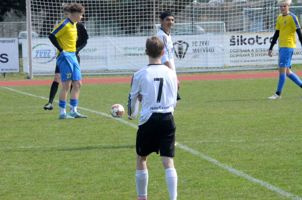 MILEVSKO – Rychle prohrávali a na body nakonec nedosáhli. Starší žáci FC ZVVZ Milevsko na Velký pátek utrpěli první jarní porážku. Druhý tým tabulky po dvou výhrách přivítal Dačice a prohrával po standardní situaci z dálky už od čtvrté minuty. Svěřenci trenéra Němce si pak vytvořili pak slibných šancí, hrozili zejména přes individuálně nejschopnějšího hráče Milana Ferka, ale tentokrát se jim nedařilo ani v koncovce. Po prohře 1:4 mají příští víkend v Třeboni co napravovat.