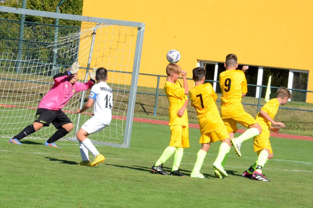 MILEVSKO – Milevsko čtyři, Hradiště dva. Tak si rozdělila body žákovská družstva v nedělních zápasech krajského přeboru. Nejprve se utkali starší žáci, kde Milevsko bralo všechny tři body, když k vítězství 4:1 nakročilo už třígólovou první půlí. Následně se jako předzápas A týmu utkali mladší žáci a utkání bylo velmi napínavé až do závěrečných vteřin. Domácí dlouho zahazovali šance a Hradiště drželo náskok 2:1. V závěru ho ještě mohlo navýšit, ale střela pět minut před koncem skončila na břevně. Zápas pak k velké radosti domácích fanoušků poslal do penalt v předposlední 69. minutě svou druhou brankou Ferko – 2:2. Oba týmy si rozdělily po bodu a druhý bonusový po bláznivých penaltách vyhrálo Hradiště. Devět penalt totiž bylo neúspěšných, až poslední desátou hosté proměnili a slavili zisk druhého bodu do tabulky!