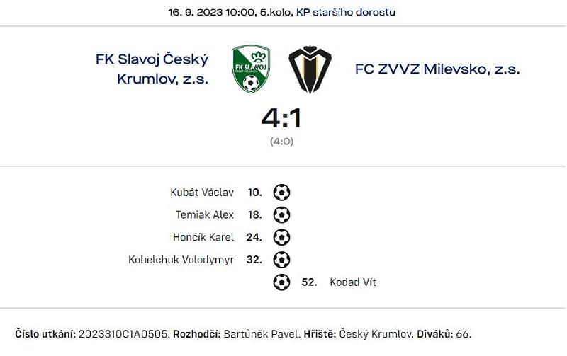 St. dorost:Český Krumlov – FC ZVVZ Milevsko4:1 (4:0) – branka Kodad Bohužel jsme prospali celý první poločas a soupeř nás potrestal čtyřmi góly. V kabině jsme si jasně řekli, že druhý poločas musí vypadat diametrálně jinak, protože jinak to bude ostuda. A musím říct, že obraz hry se úplně změnil a najednou jsme soupeře začali […]
