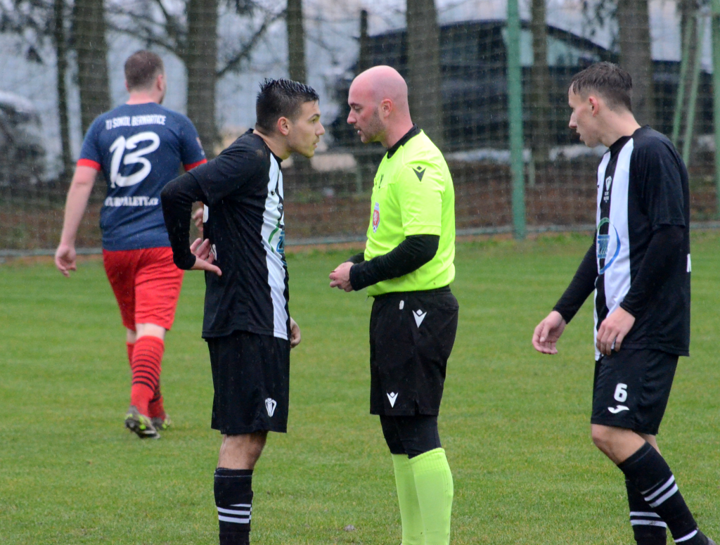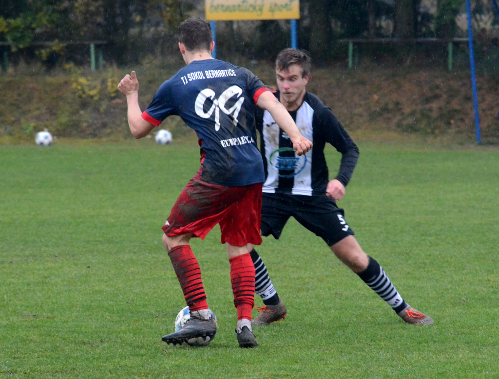 Na začátku soutěže oba týmy bojovaly o pozice na stupních vítězů, než si vzduchotechnici vybrali menší výsledkový útlum a propadli se tabulkou. Minulý týden už ale smázli 6:0 béčko Protivína, takže šli do derby proti druhým Bernarticím v pozitivní náladě. Podle toho také vypadal začátek, když nejprve Baštýř zakončil hezkou akci a poté poslal hosty už do vedení o dva góly z penalty za ruku kapitán Milaberský.